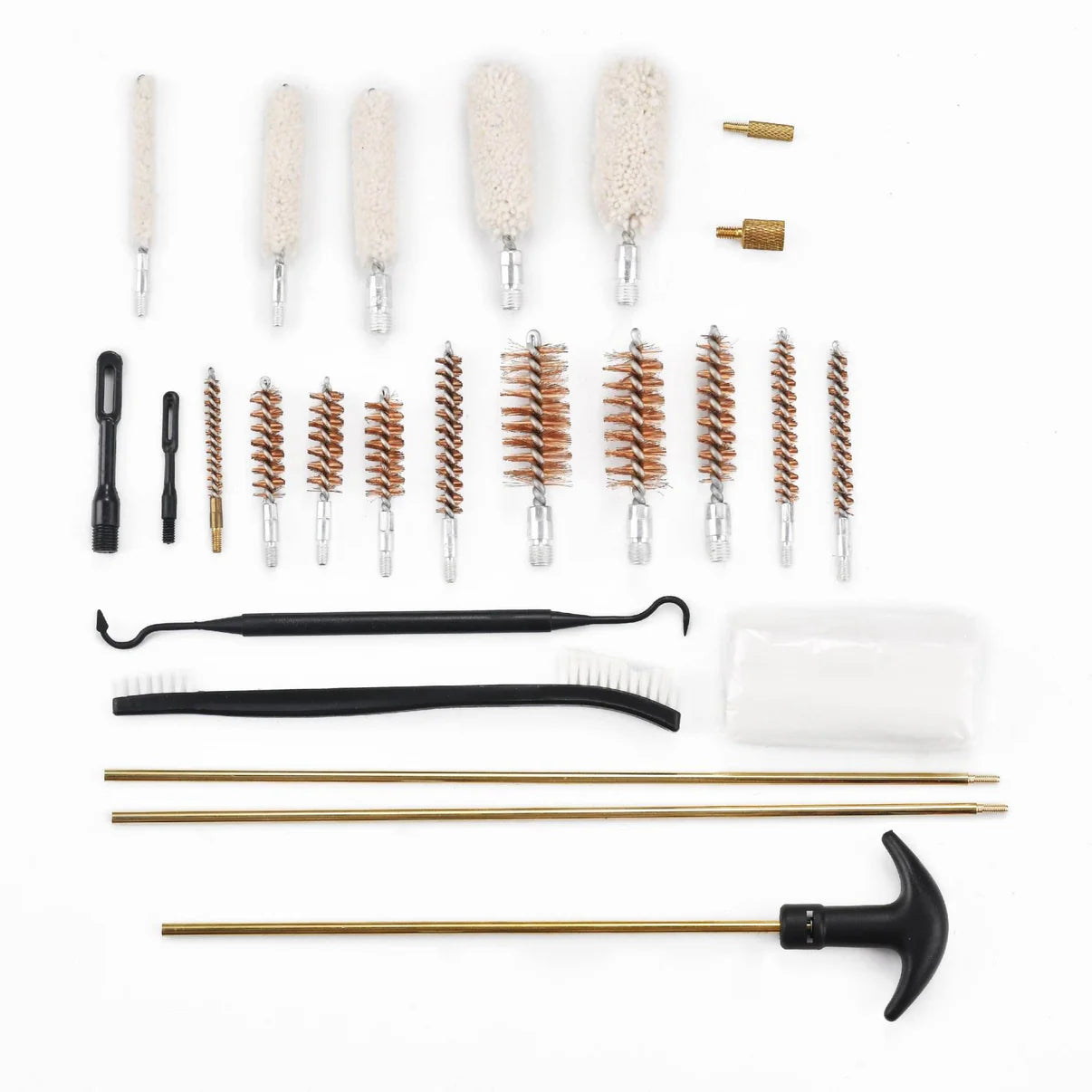 U setu su mesingane, najlonske i pamučne četke – idealne za precizno i bezbedno uklanjanje prljavštine i ostataka baruta.